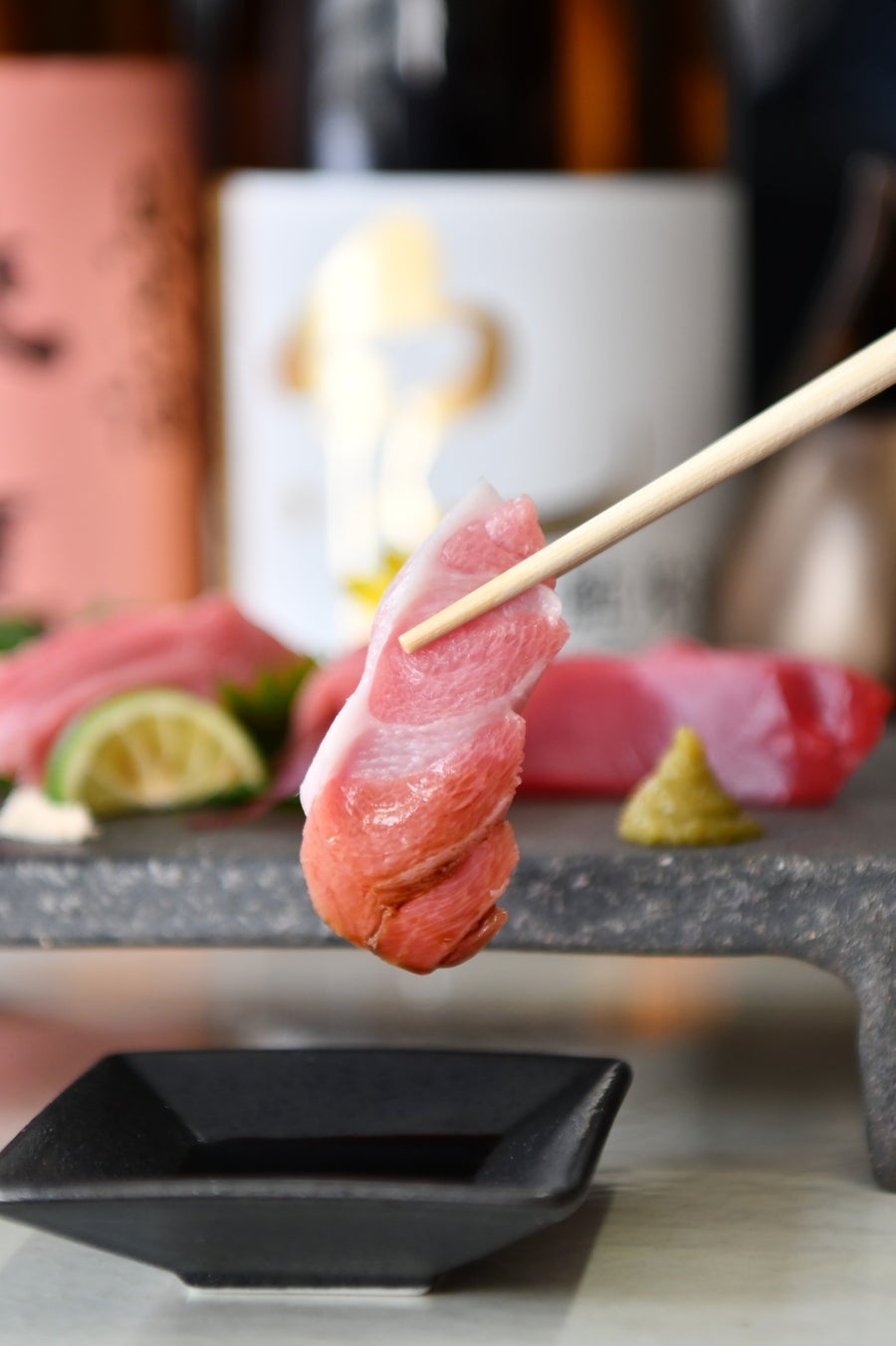鮪達人天神店では、生マグロ、しかも大トロ・中トロが存在する本マグロに特化して、生本マグロのフルコースを提供しております。いくら生本マグロが美味しいとはいえ、同じような調理方法では食感や味が似てしまい、満足も半減してしまいます。徹底的に生マグロにこだわりを持つ私共としては最後まで美味しく食べて頂いてもらう為に和食・イタリアン・フレンチ・中国料理のエッセンスを存分に加え、新しいマグロ料理”マグロフュージョン料理”として生マグロ専門店を目指しております。