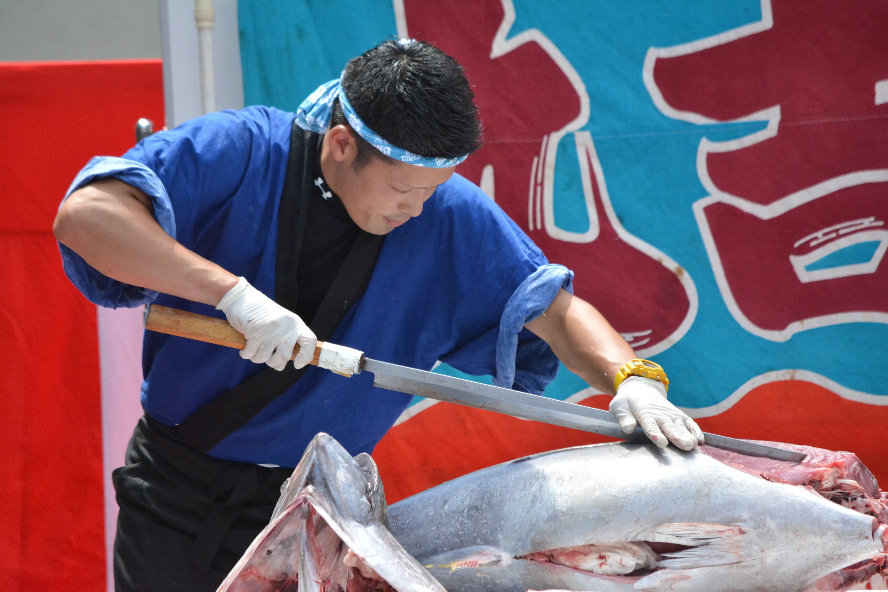 ”生マグロを仕入れてみないか?”のお話があり、そこから鮪達人というマグロ解体ショーの事業を始めて今季で14年目になります。