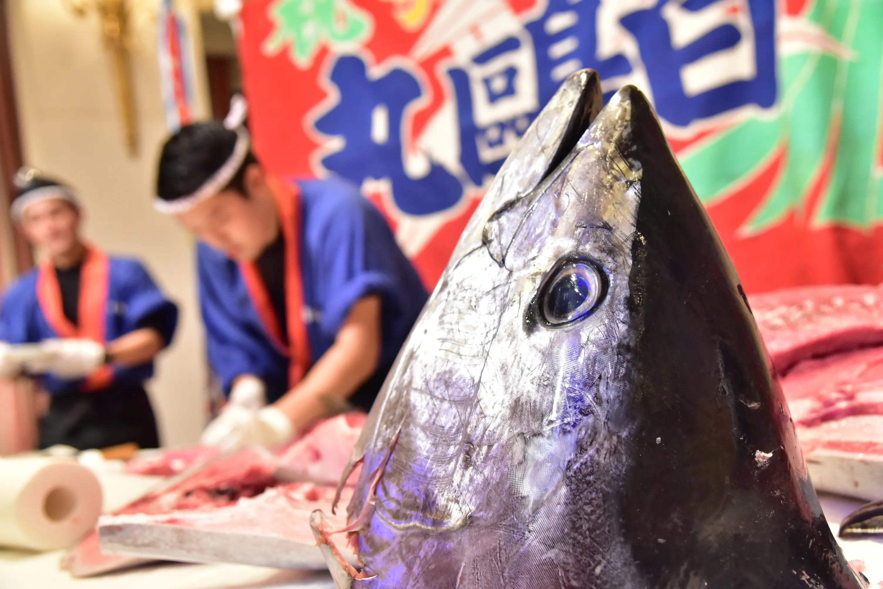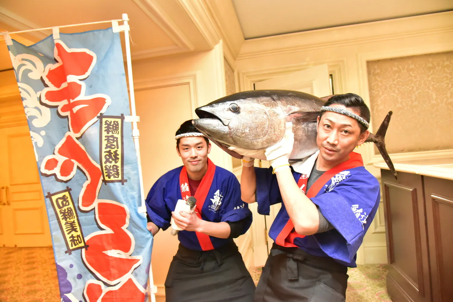 鮪達人のマグロ解体ショーは、出張ケータリングとしてお客様のご要望がある場所で実施しております。法人様のパーティーですとホテルのパーティー会場やオフィス内。個人様のご依頼でご披露宴会場にも出張しております。又、住宅展示場等の集客イベントにも出向き幅広く活動しております。