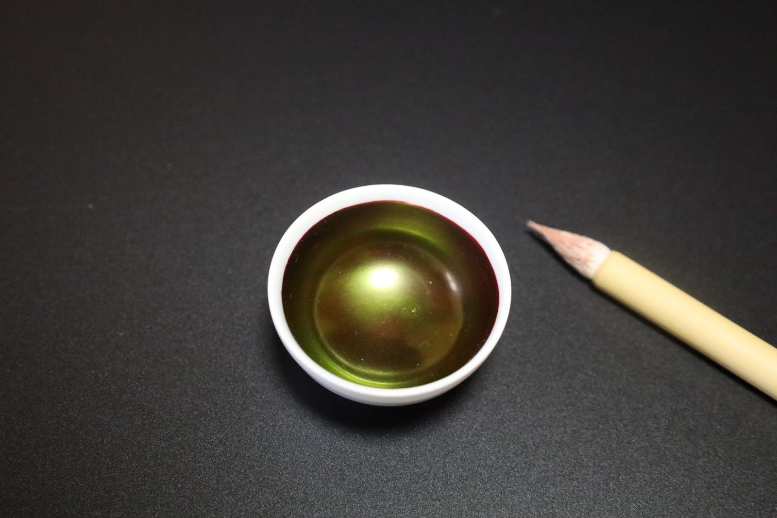 理由は未だ解明されていませんが、紅花の赤色の色素は乾くと美しい玉虫色に変化します。