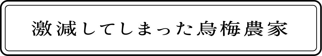 奈良県の月ヶ瀬地域では700年前から烏梅を作り続けていて、私は烏梅農家の10代目。烏梅作りの最盛期には月ヶ瀬にも400軒以上の烏梅農家がいたとされていますが、明治期に西洋から安価な化学染料が輸入されると烏梅の需要は激減。さらに戦時中の食糧難のなかで腹を満たさずお金にならない烏梅農家は次々と消えていきました。