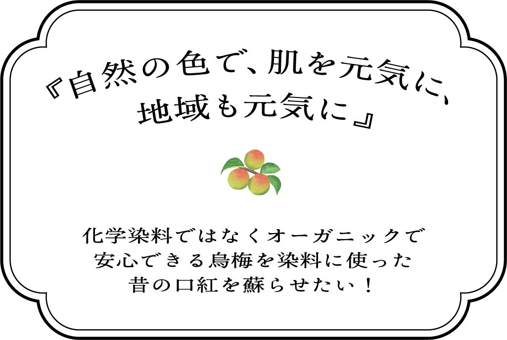 烏梅農家がどうして・・・?と思われてしまいそうな「口紅」の復活プロジェクトですが、作り方や歴史を文献を読んで学んでいくうちに心からワクワクしている自分がいました。家業である梅、烏梅を使ってこんな気持ちになれたこと、そしてそれをサポートしてくれる仲間がいることに感謝しています。