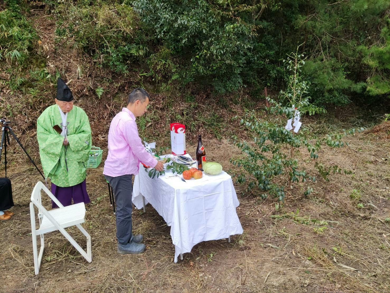 土地の神様を祀って土地を利用させてもらう事の許しを得る。