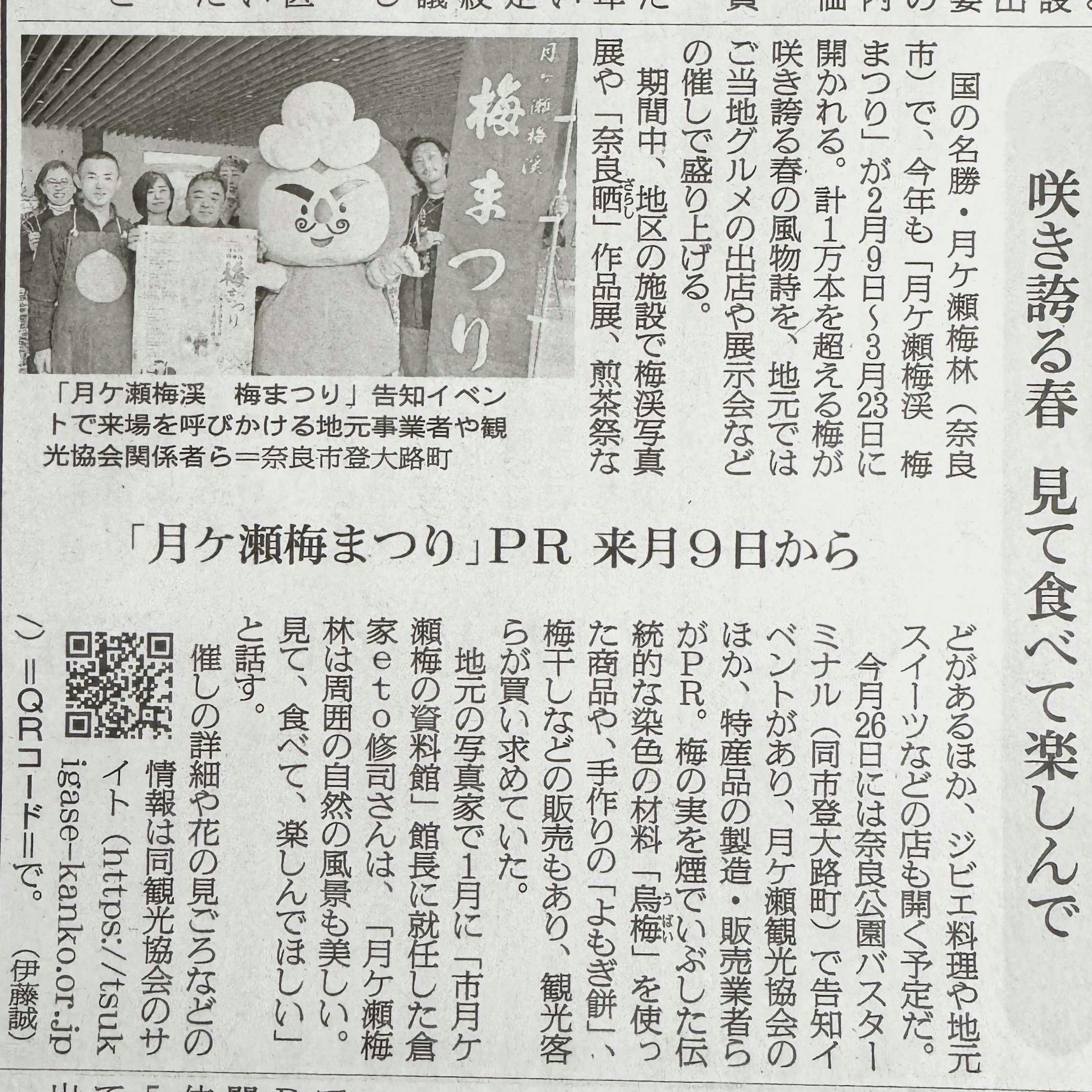 今朝の朝日新聞で月ヶ瀬梅まつりが紹介されました。