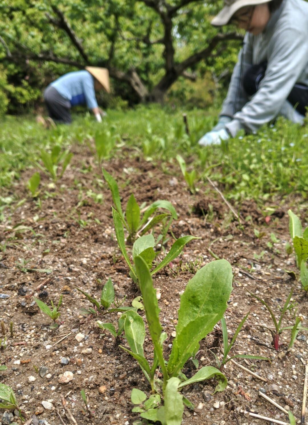 紅花栽培と染物コース2025。紅花の間引きと雑草取りイベントの様子