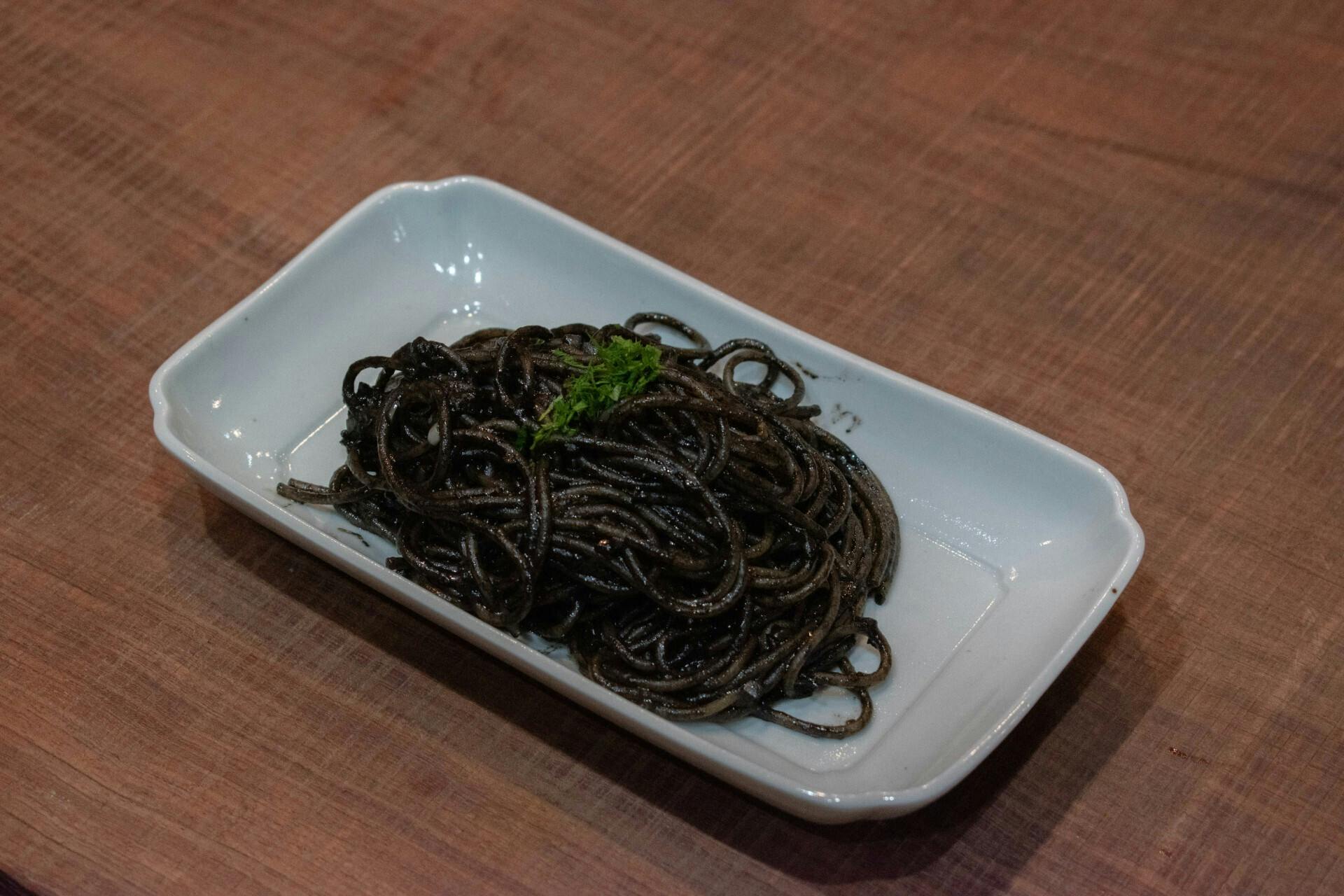 先日の大人の寺子屋余白の烏梅コース料理 烏梅墨スパゲティ