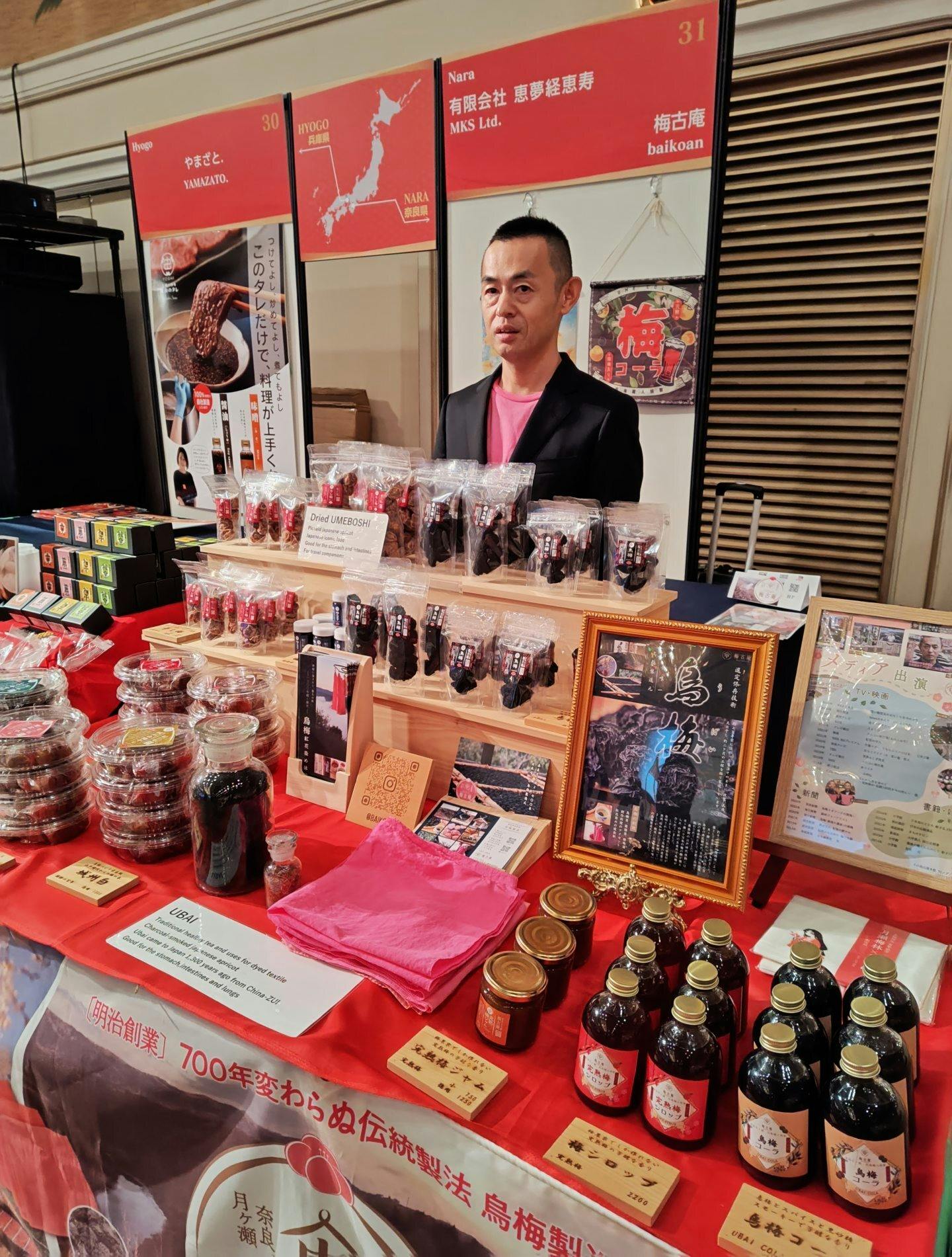 各都道府県から1〜2社、82の事業者が特産品をPRしました。奈良県からは梅古庵と有限会社恵夢経恵寿さんの葛湯が出展しました。