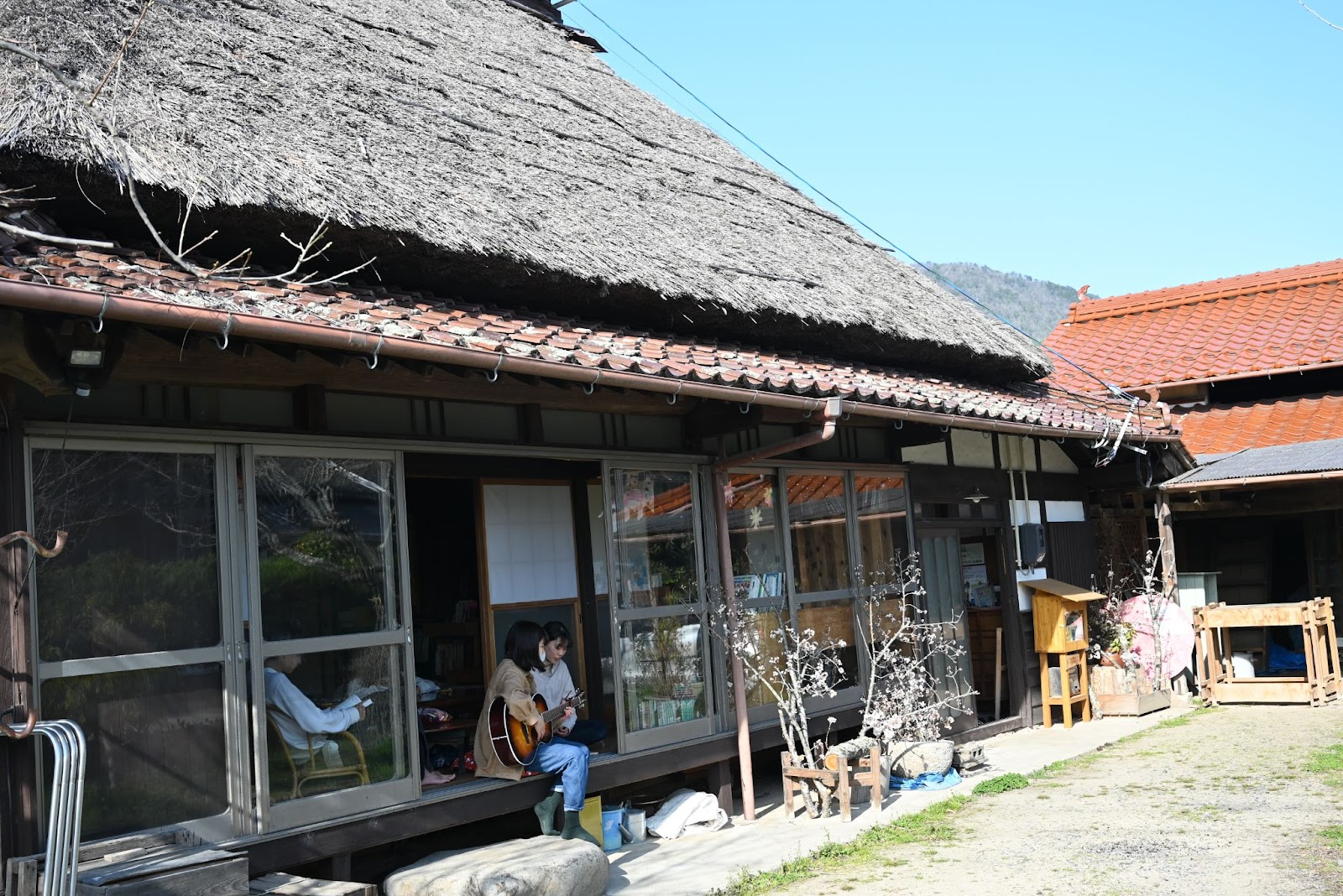 ほたる荘は、5年ほど前に、空き家となっていたところを広島大学の教員と学生が中心となって地域の図書室としてリノベーションした茅葺古民家です。本棚に並ぶ本は、地域の方やメンバー、来館された方から寄贈して置いてある「私の大切な本」たちです。本を贈ってくれた方の人柄や想いが読む人に伝わる仕組みがつくられています。また、ほたる荘ではスペースの貸し出しやイベントなども行われています。最近では、蔵を改修したものづくりスペース “つくれば工房” や、刺繍ブランド itobanashi のアトリエになるなど、地域の方やほたる荘に関わる方の「やりたい」が形になる場所になっています。