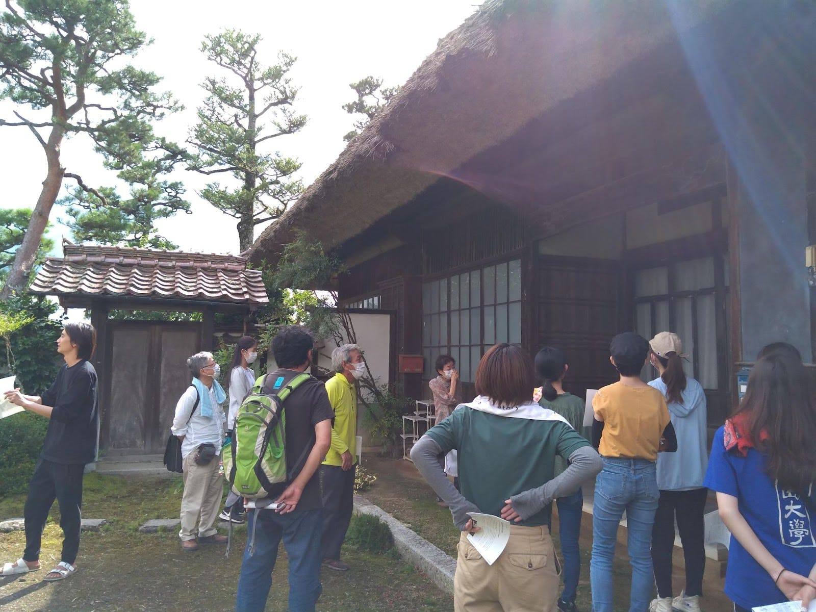 *下の写真は、地域のおばあちゃんが暮らしている大きな茅葺き民家を、参加者の方と見に行った時の様子です。