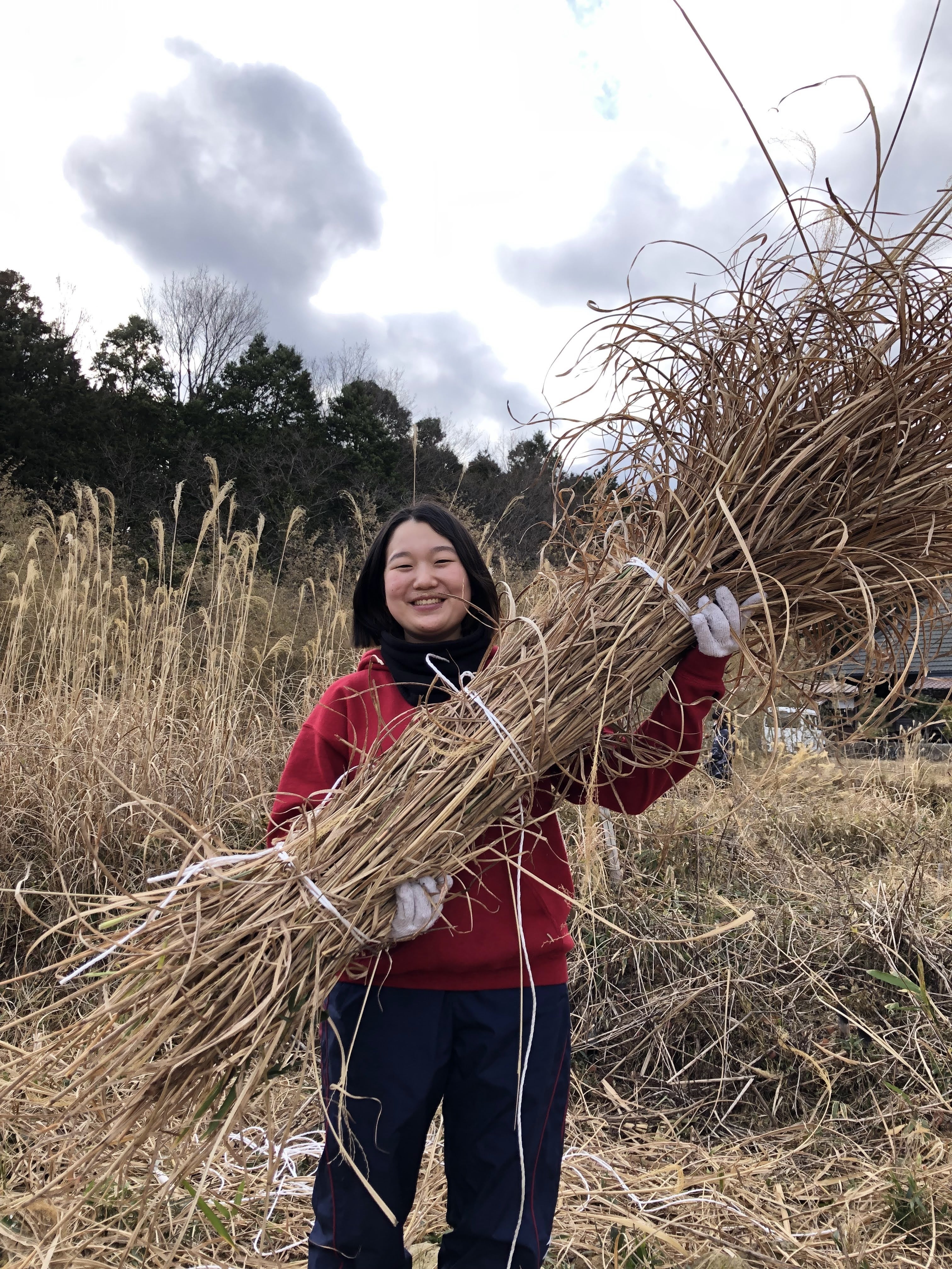 ススキを茅葺の原料として使うには、乾燥している必要があります。なので、ススキが枯れて雪が降るまでの、11月末から12月中旬くらいまでに一気に刈ってしまわなければなりません。しかも、大量に!!