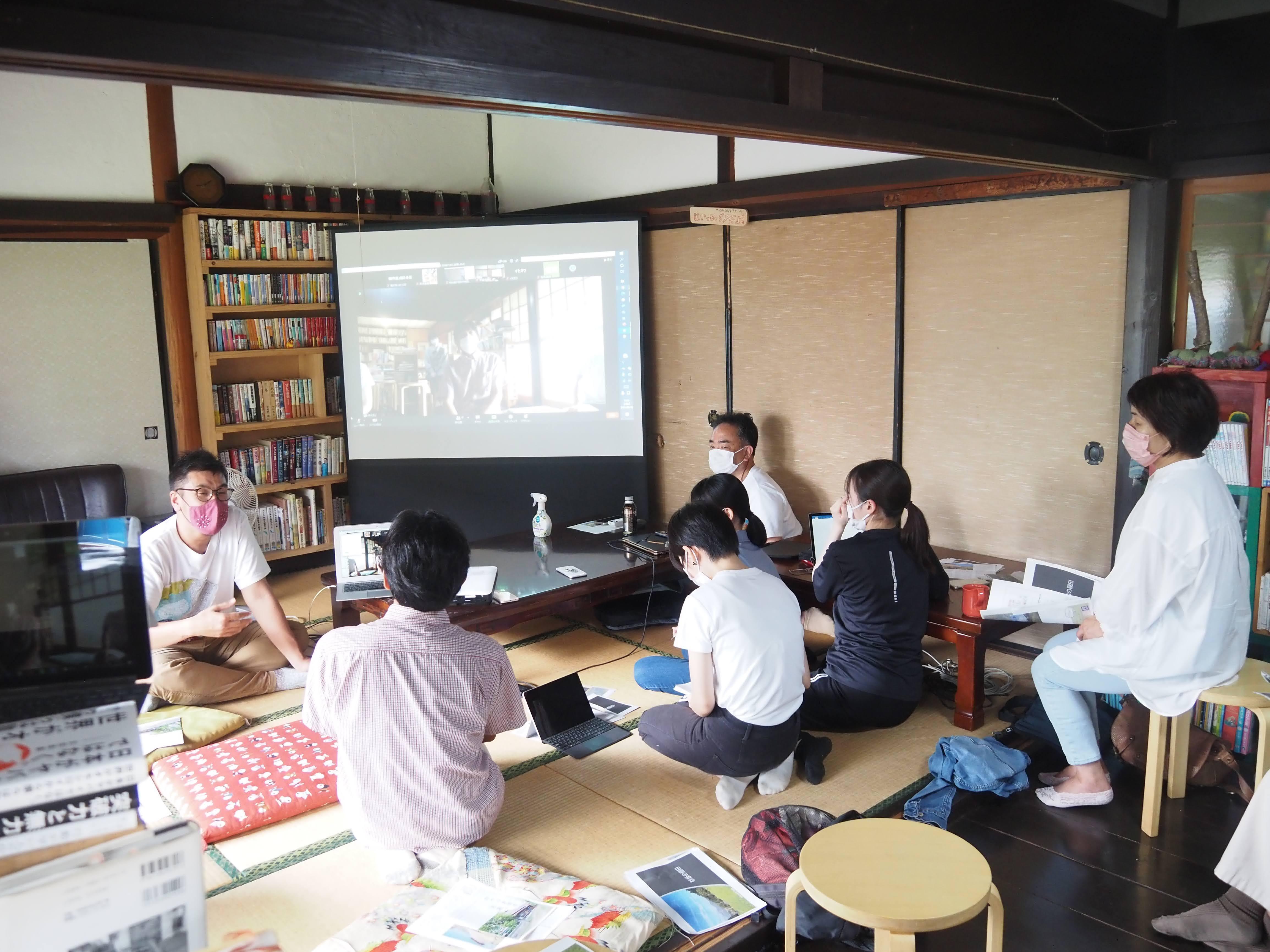 会議の後は、志和堀さんぽを開催しました。志和堀地区の他のかやぶき古民家を訪れて住民の方のお話を聞いたり、豊かな田園風景を楽しみました。夜には実際に「ホタルの宿自然学校」で学生合宿をして、かやぶき屋根古民家で「暮らす」を体感しました。