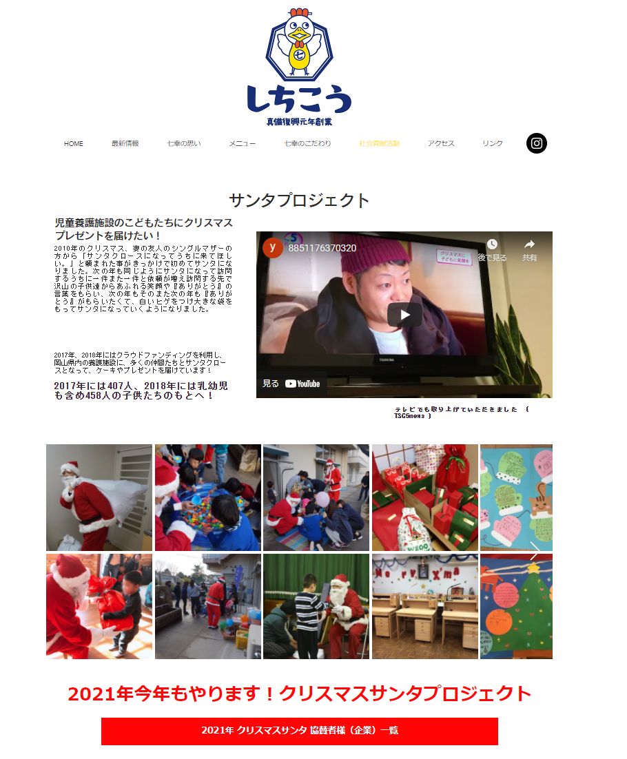 当社シグナルプラスが運営する『串もん屋七幸』のHPにて2021年クリスマスサンタの協賛企業者様として支援者様のお名前を掲載させていただきます。