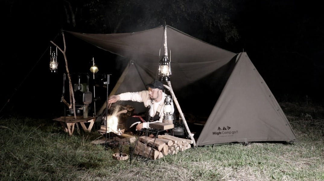 Fireproof HCG TENTは素材に耐久性・耐火性に優れた厚手の帆布(コットン100%)を使用、生地から縫製まですべてを日本の工場で生産したパップテントです。