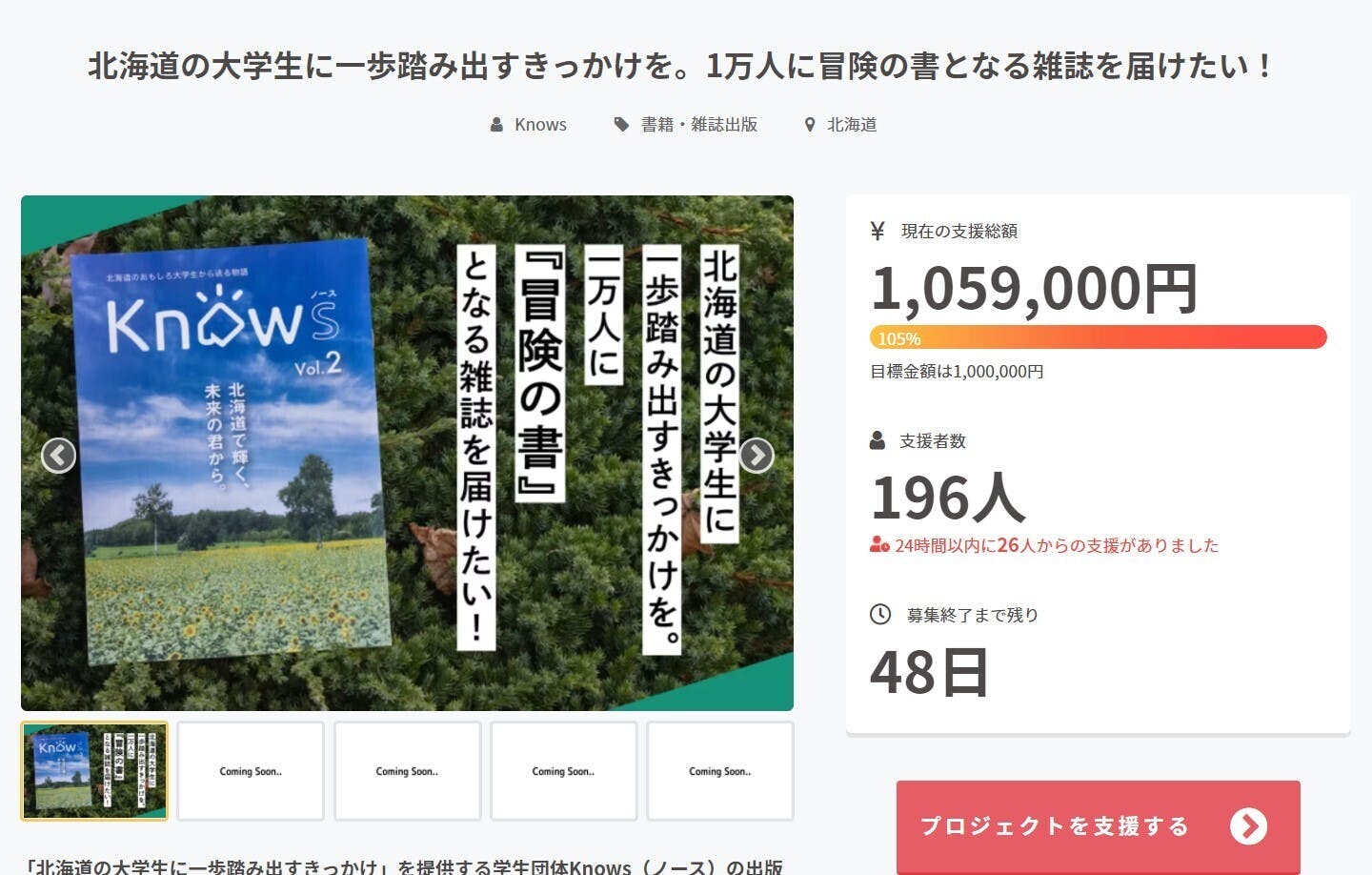 Knowsの本クラウドファンディングは昨日12/18に目標支援金額の100万円を集めることに成功しました!!