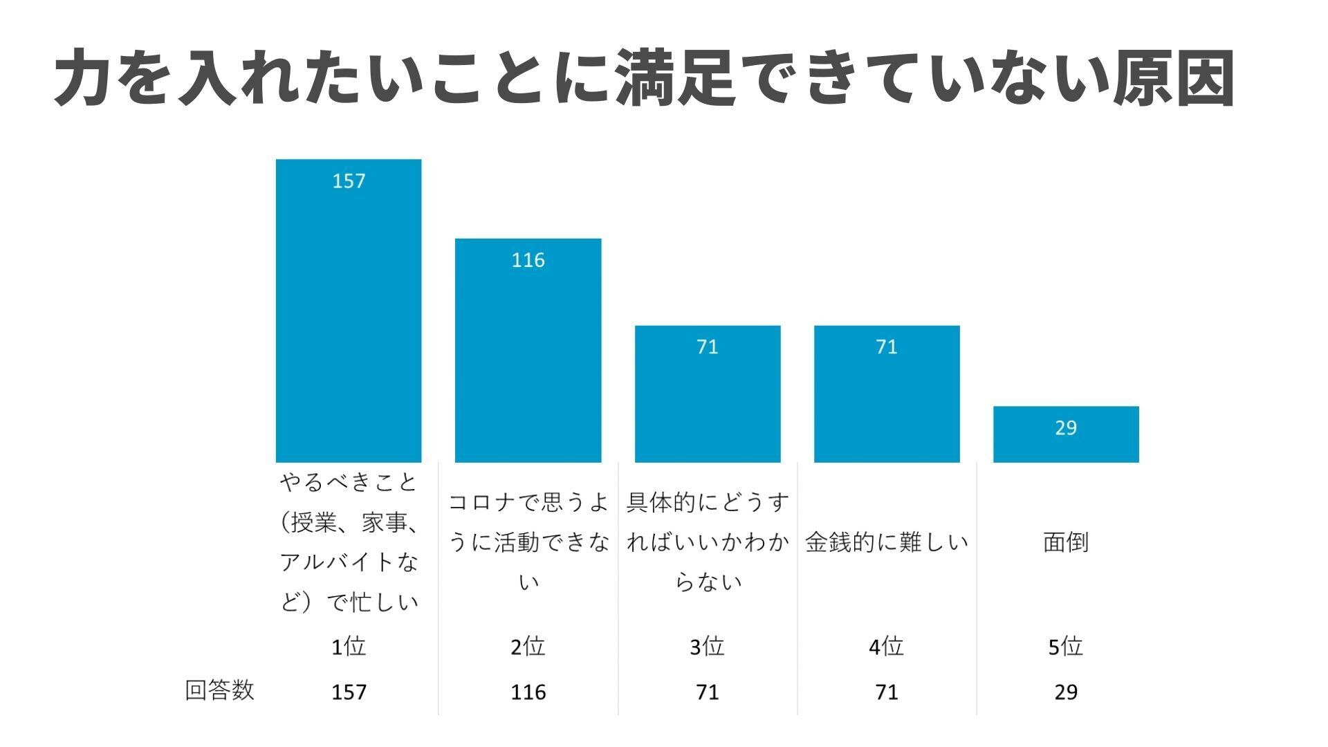 これは私たちが11月から12月上旬にかけて道内の大学生314名から回答を集めたアンケートの結果を表したグラフです。「コロナで思うように活動できない」は2位にランクインしていることが分かります。