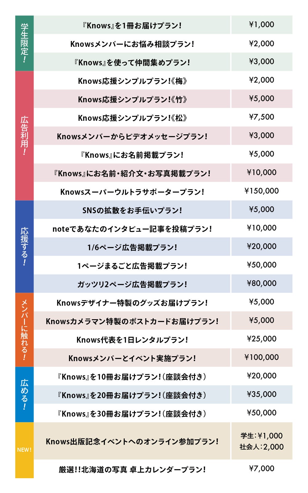 北海道の各地に『Knows』を届けるためには、郵送費もしくは交通費などがかかってしまいます。ご支援いただいたお金の用途としては地味に感じる方もいらっしゃるかもしれませんが、こうした用途こそ私たちの理想を実現するために不可欠なのです。