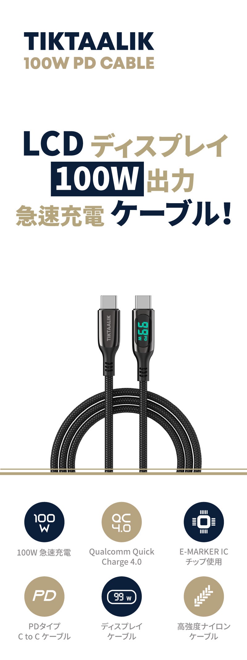 TIKTAALIK 100W PD Cableは100W急速充電が可能でQualcomm Quick Charge 4.0などさまざまな機能と互換ができます。