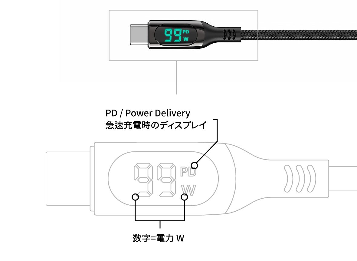 TIKTAALIK 100W PD Cableは可視性の高さを誇るディスプレイを使用し、いつでもどこでもはっきりと識別できる程度の出力で表示します。多様な充電器及び製品を使用する今、伝送速度及び出力量を表示する細やかさが重要です(※100Wで充電する場合、LCDディスプレイでは99Wと表記されます)。