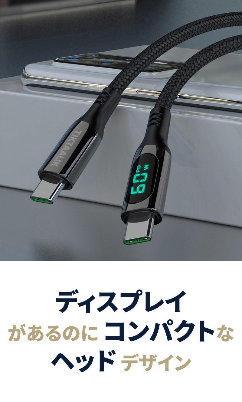 TIKTAALIK 100W PD Cableのヘッドは小さいサイズながらも十分なサイズのディスプレイ画面を導入し、可視性と耐久性をしっかりと発揮します。