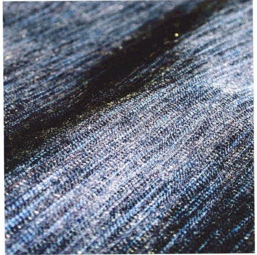 天然藍染めデニムの原反には、 この酸化ムラのため、 タテ糸が所々数センチのタテ筋となって薄くなっている部分があります。これもまた、 天然藍染めデニム独特のもので、 天然藍染めデニムの証あるのです。