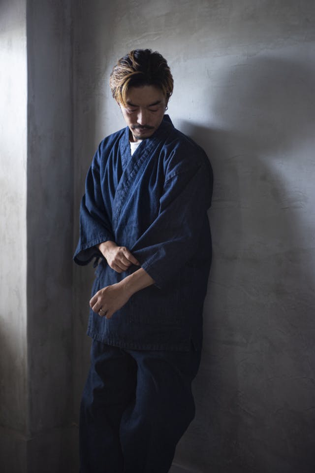 その幅広い知識と経験で生地のチョイスから仕様まで、和服である「作務衣」をデニムで仕上げるためにご協力いただきました。