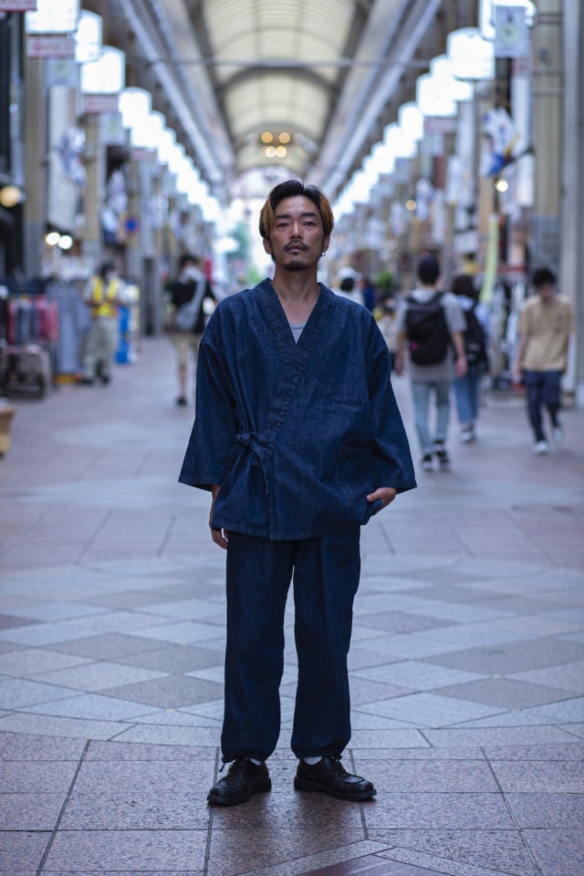 その幅広い知識と経験で生地のチョイスから仕様まで、和服である「作務衣」をデニムで仕上げるためにご協力いただきました。