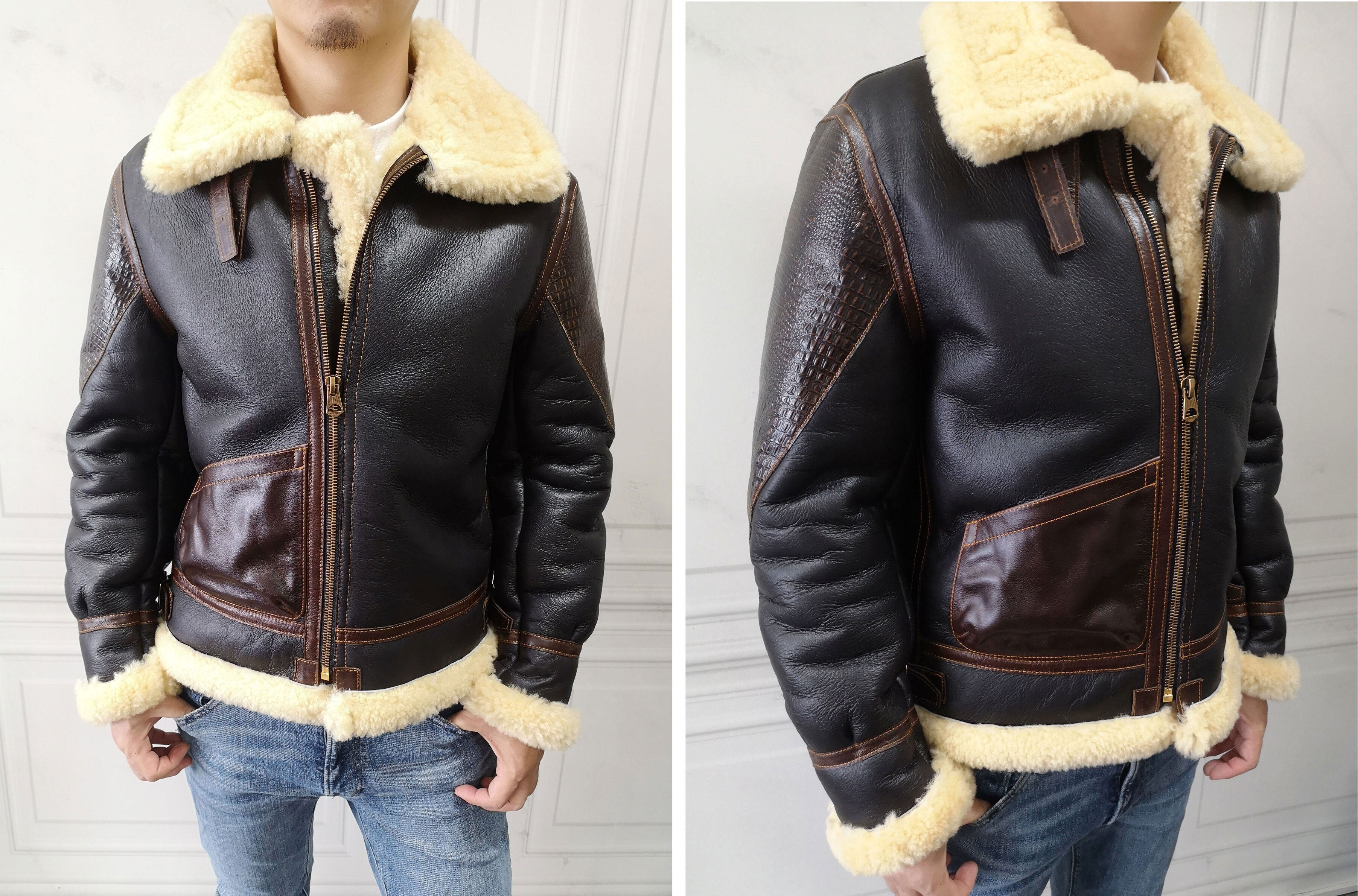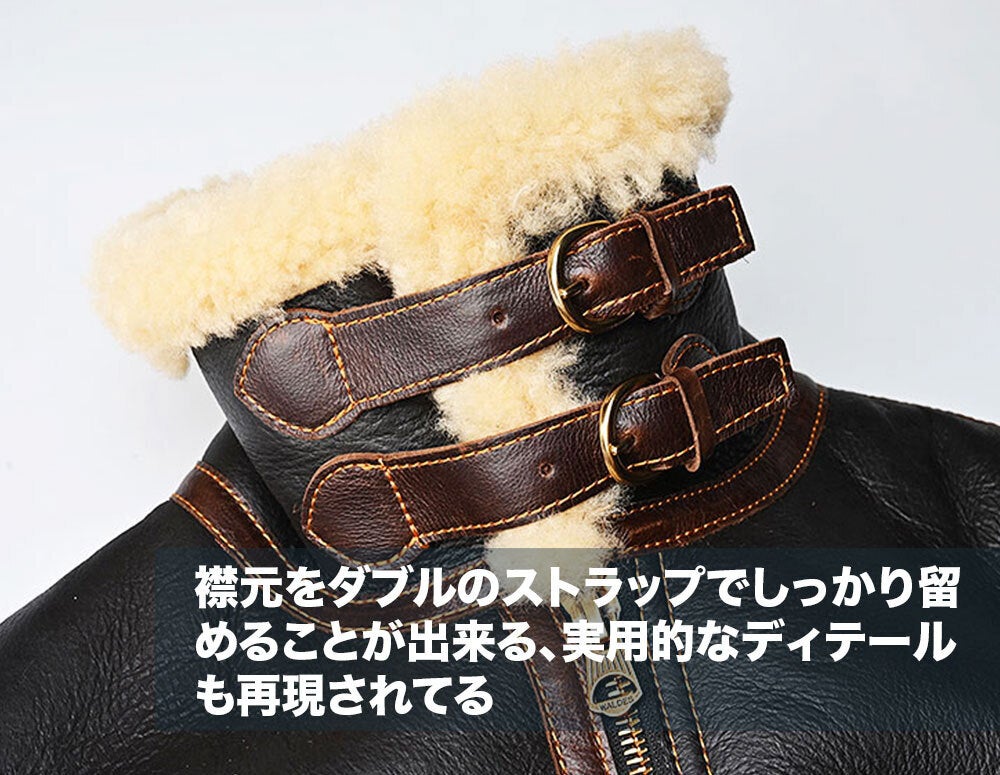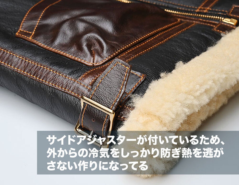 1934年5月8日に陸軍航空隊で採用が開始され、羊の毛皮(ムートン)をそのままライニングにしたこのフライトジャケットは風を侵入させず、体温を逃がさない事を貫いた設計。1943年まで支給されたフライトジャケットです。