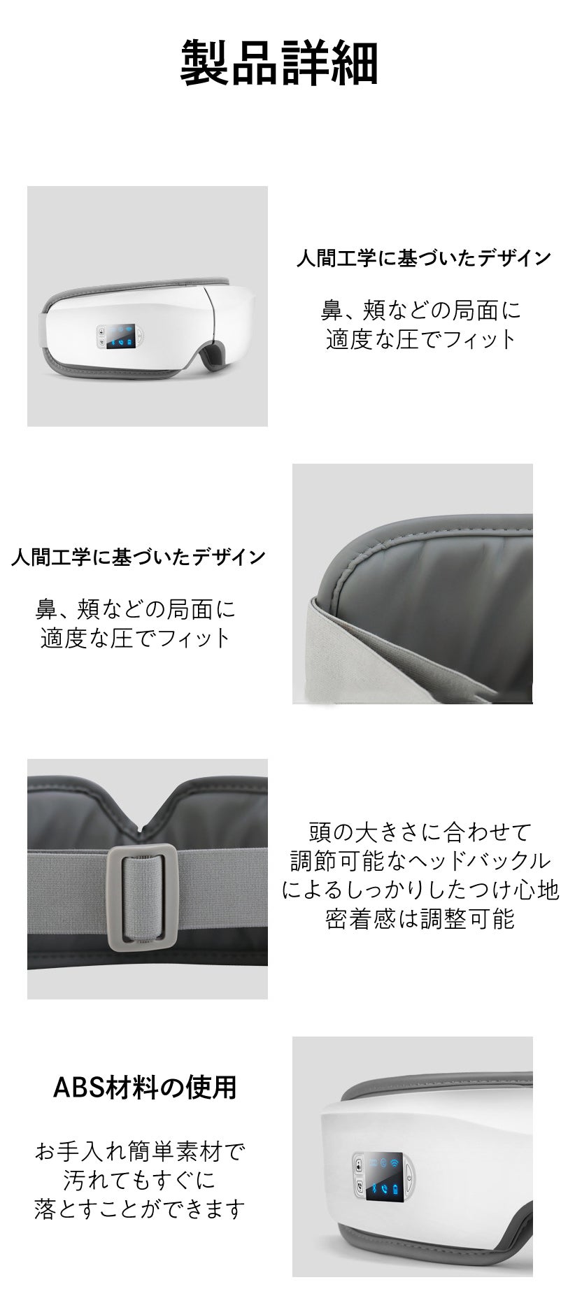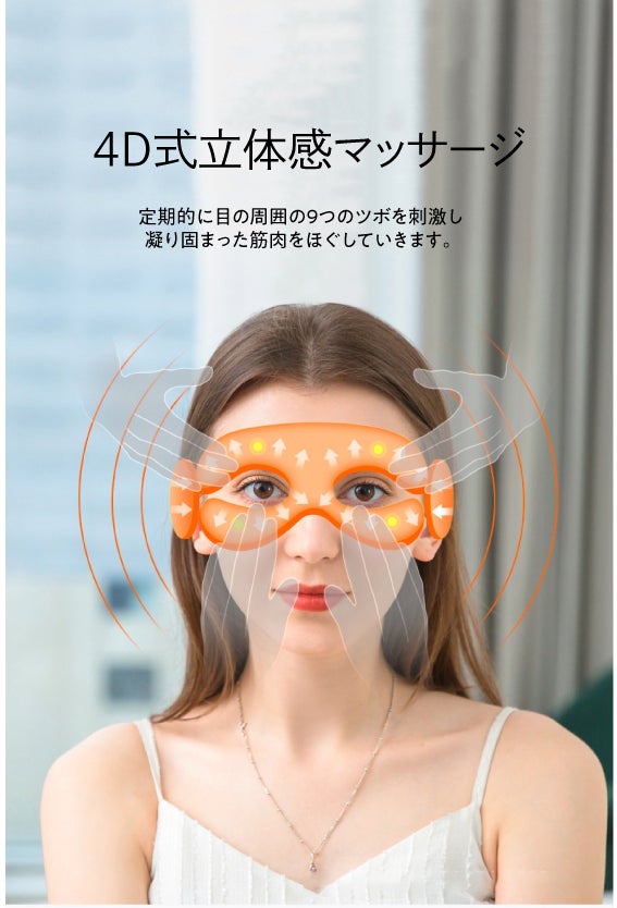 また、振動は毎秒異なる周波数で振動、さらに定期的に目の筋肉周辺を加圧することで疲労を軽減する期待ができます。