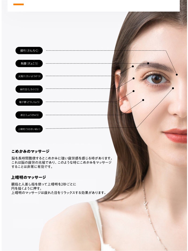 またこめかみへの集中的なマッサージと定期的な目の周囲の