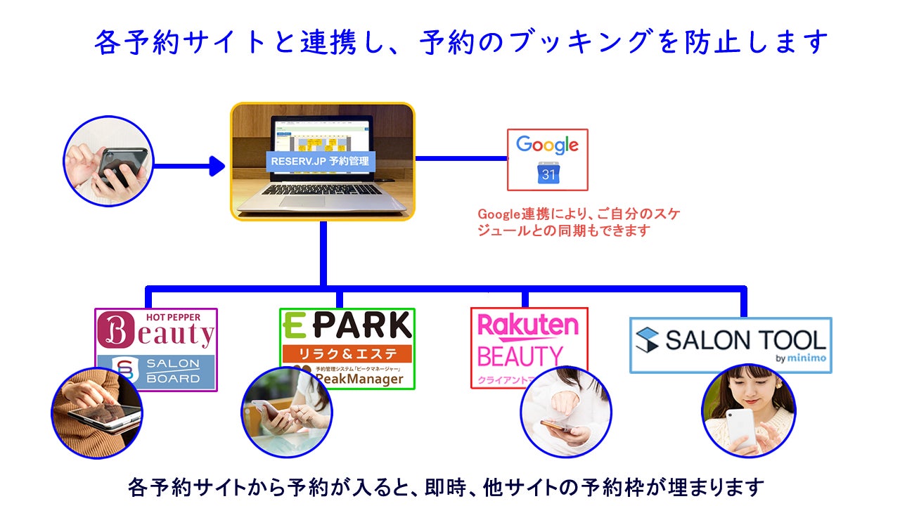 しかし、集客サイトは店舗の取り込みのため各社独自の予約サイトを持っており、他で予約が入った場合、集客サイトそれぞれの予定を埋めないと予約のブッキングが発生します。