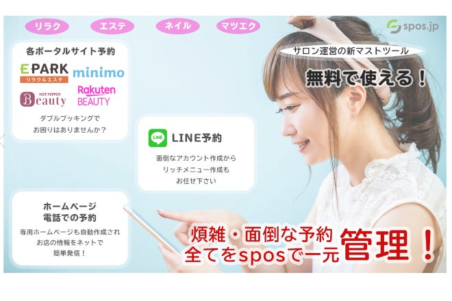 世の中の予約システムは自宅サロンなどの小規模店舗で使うには高額ですし、集客のためポータルサイトに複数登録すると、予約のブッキングが怖いなどあり、多くのサロンの方々にspos.jpを使って頂いたらとも思っていました。