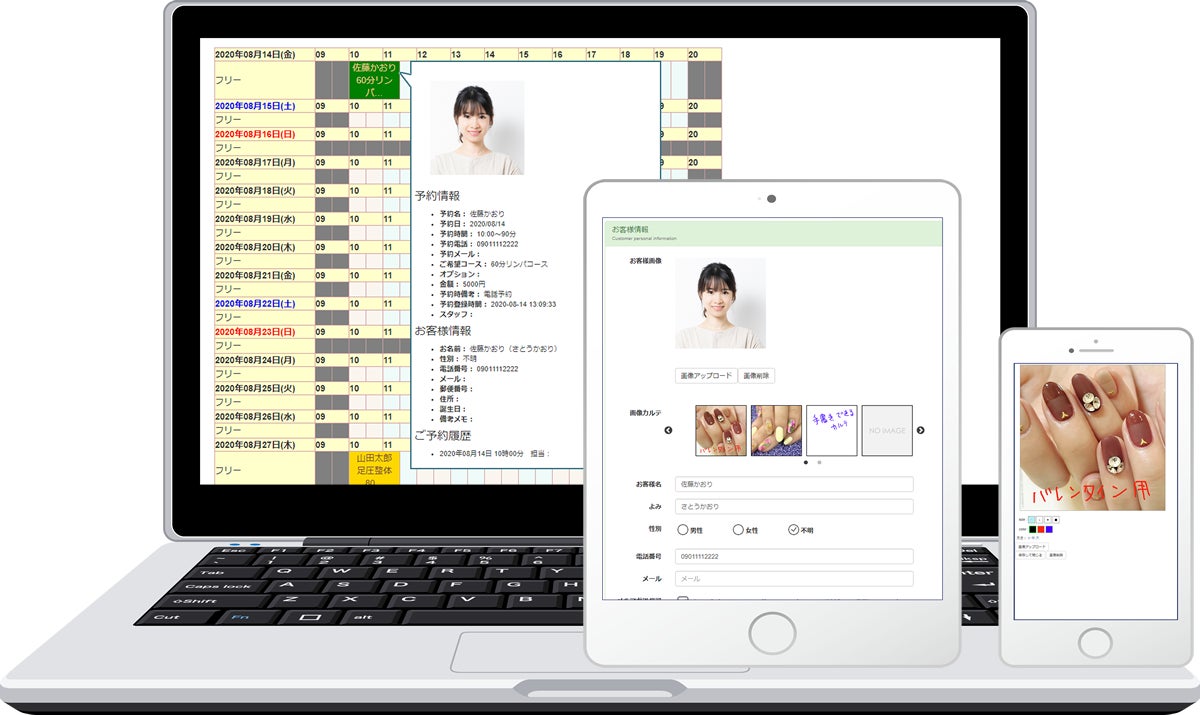 spos.jpは元々、予約システムですので、もちろんお客様からの予約の受付は24時間できますし、電話予約や次回予約の登録と、あらゆる予約業務をこなします。