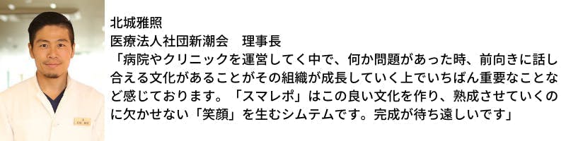 スマレポの仕組みによって医療介護現場のスマイルが増えることを期待しています。
