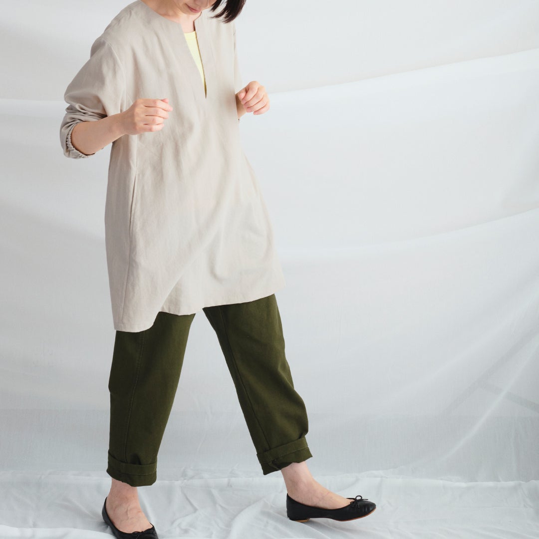 軽くてしなやかな生地なので、着用したときにストンと落ちるシルエットになります。