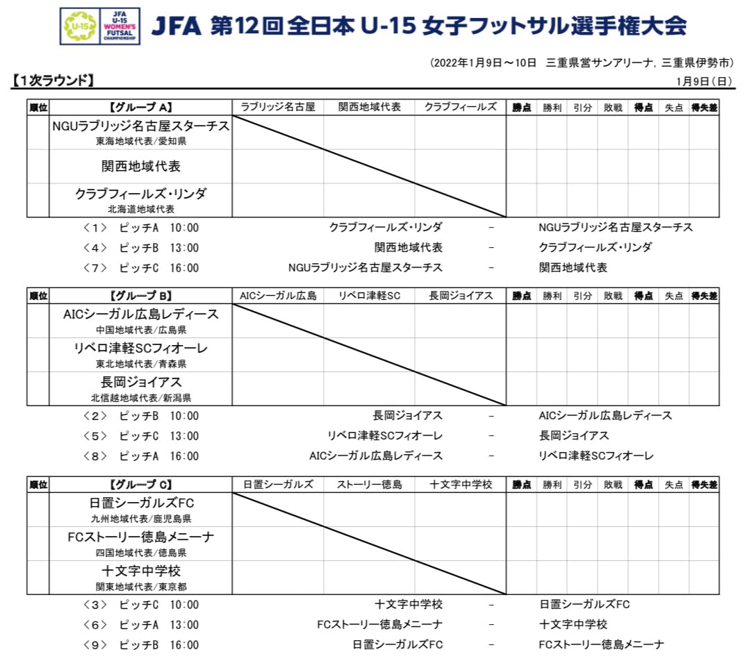 1/9〜1/10三重県にて開催されるフットサル全国大会