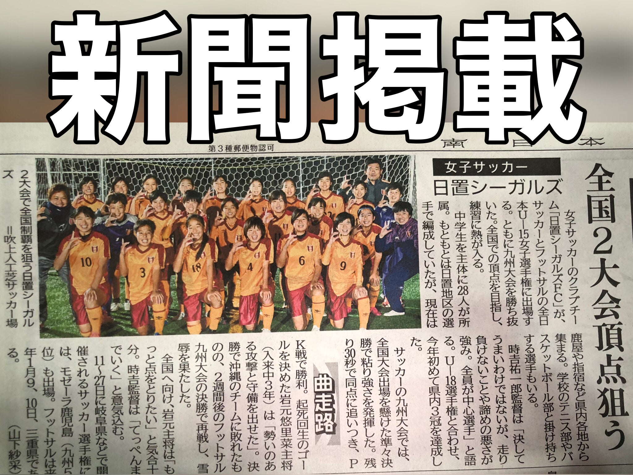 ⬛︎全国大会第1弾 12/11〜JFA第26回全日本U-15女子サッカー選手権大会、全国大会まで残り3日となりました。本日12/8が最終練習日。選手たちは最終調整に入っています。⬛︎全国大会第2弾 1/9〜JFA 第12回全日本U-15女子フットサル選手権大会になります。鹿児島県大会と九州大会の優勝により勝ち取った全国大会です。たくさんのご支援や応援メッセージを噛みしめながら、感謝の気持ちを忘れず、選手たちのチカラに変えていきます。