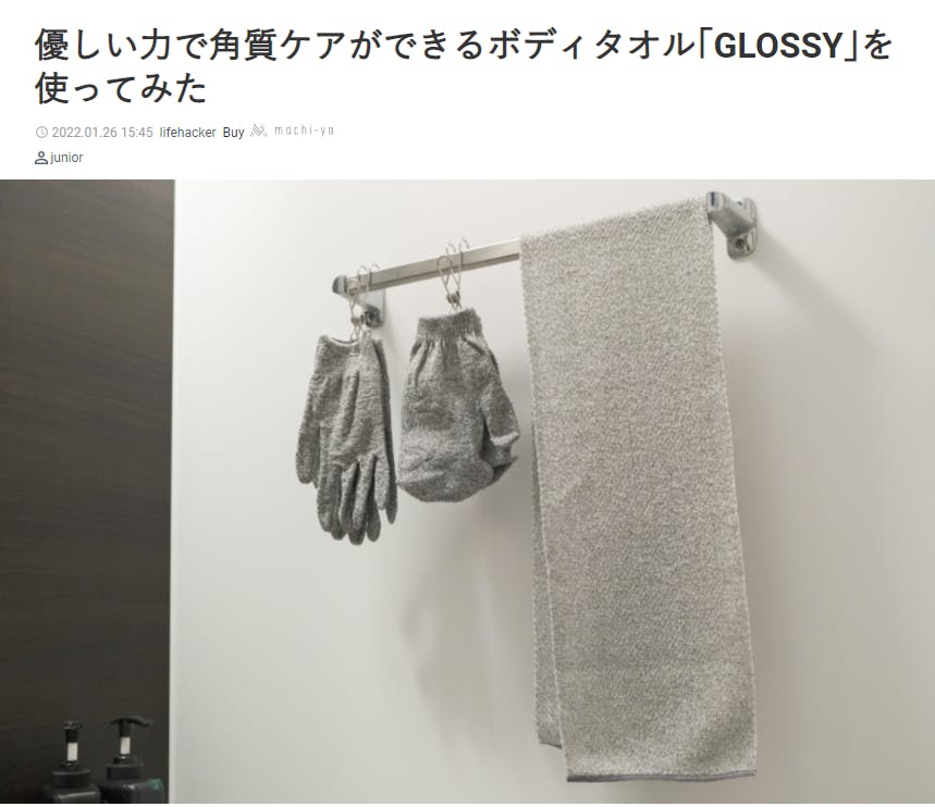 優しい力で角質ケアができるボディタオル「GLOSSY」がGIZMODOに紹介されました!