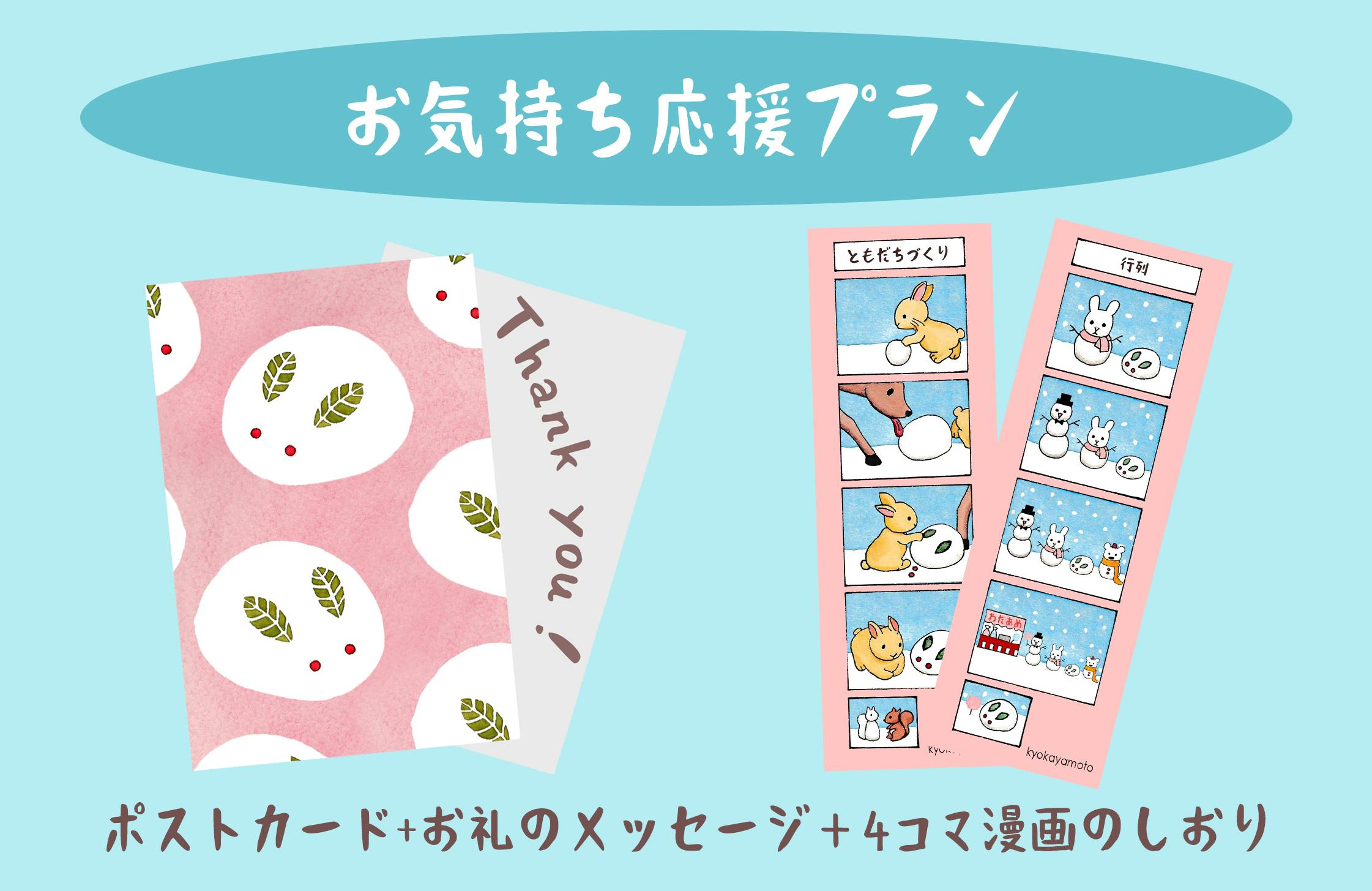 ポストカード+お礼のメッセージ、4コマ漫画のしおり(ブックマーク)