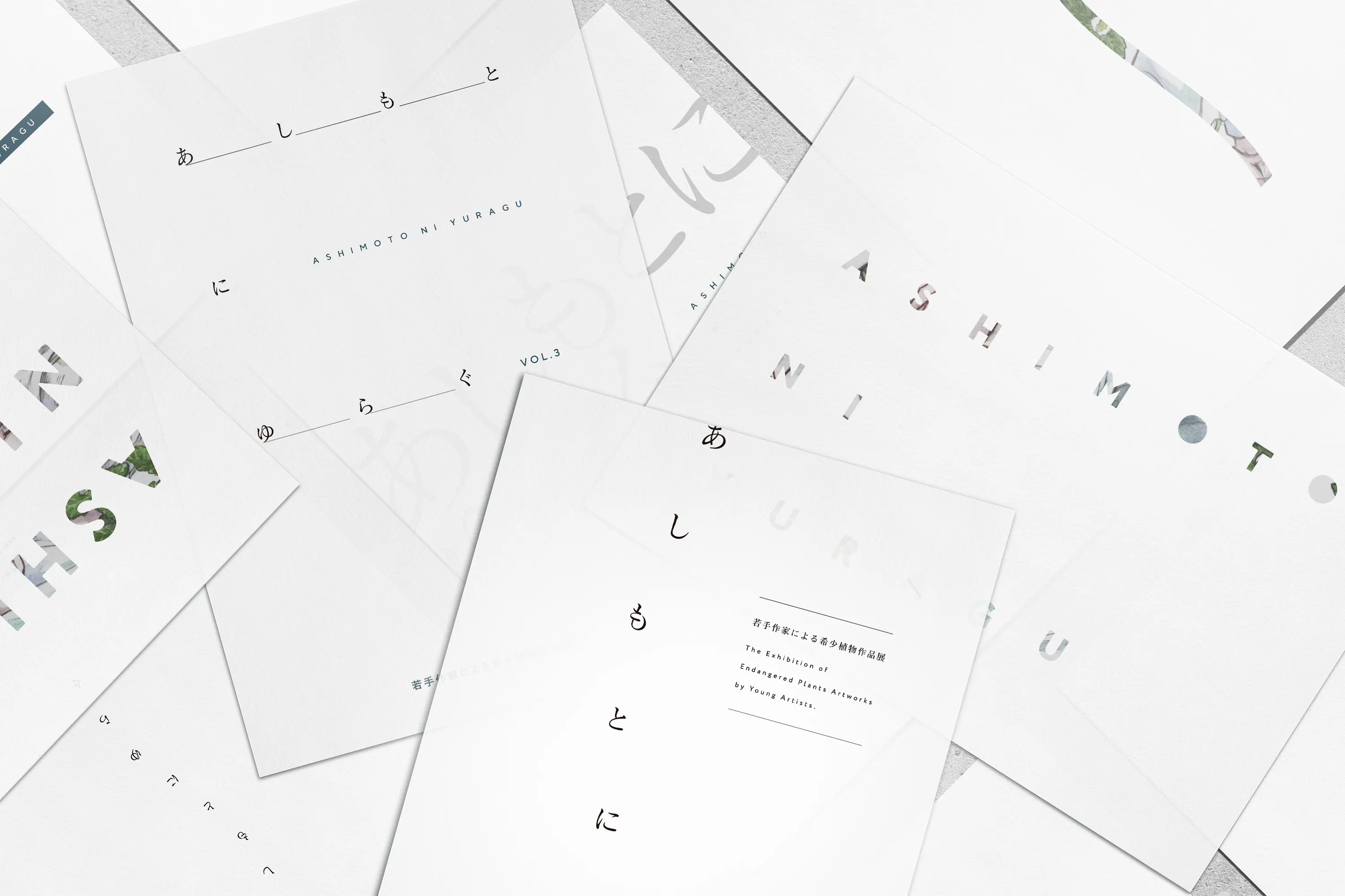「実際の来場者の方にも欲しいと思ってもらえるような…来れなかった人には、会場の雰囲気や作品の素晴らしさが伝わるような…」「あしもとにゆらぐ、のコンセプトが伝わるような表紙のデザインだといいなあ。足元で風に揺れてる植物の凛とした空気感みたいなのが伝わるのがいい」「植物園の展示で、イラストやアートに興味がある人以外の、むしろ植物の方に興味がある人も思わず手元に欲しい、と思うような…」「インテリアとしてお家に飾れるようなシンプルだけどおしゃれな装丁で…」「他のイラスト系の画集とはちょっと違う雰囲気の…」「"本"として手元に置いておきたくなるような…」「中身も、絶滅危惧植物の紹介を載せて、そっちにも興味をもってもらえるような」「植物に興味がある人がアートに、アートに興味がある人が植物に、自然に関心を持てるような…」「学術協力をいただいている先生方の図鑑の紹介もしたい!」「メインビジュアルのイラストが全面に出てしまうとその人の画集のように見えるから、なるべく『みんな』の画集に見えるように…」「どうせ作るならかっこいいやつ!!」