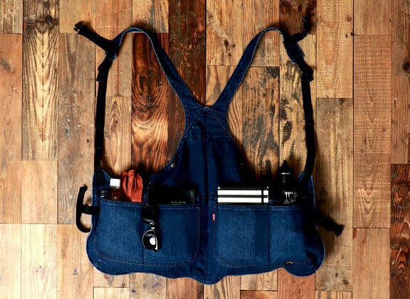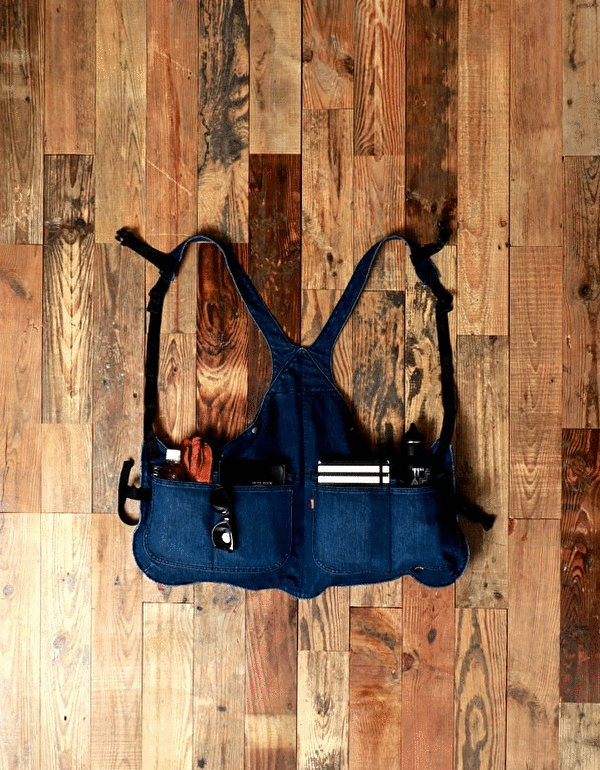 こんなにたくさんの物がこのベストに収納されているのでした!しかも丈夫なコーデュラデニムを使用していますので耐久性も安心です。