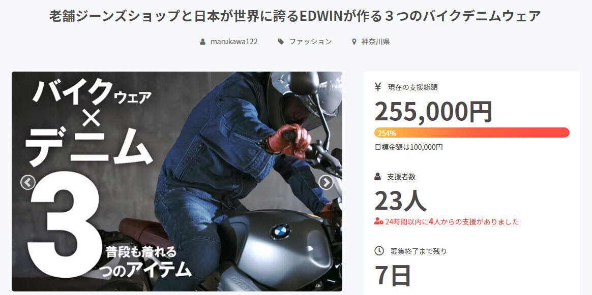 【マルカワ×EDWIN/3つのバイクデニムウェア】プロジェクトのお申し込み期間もあと1週間となりました。