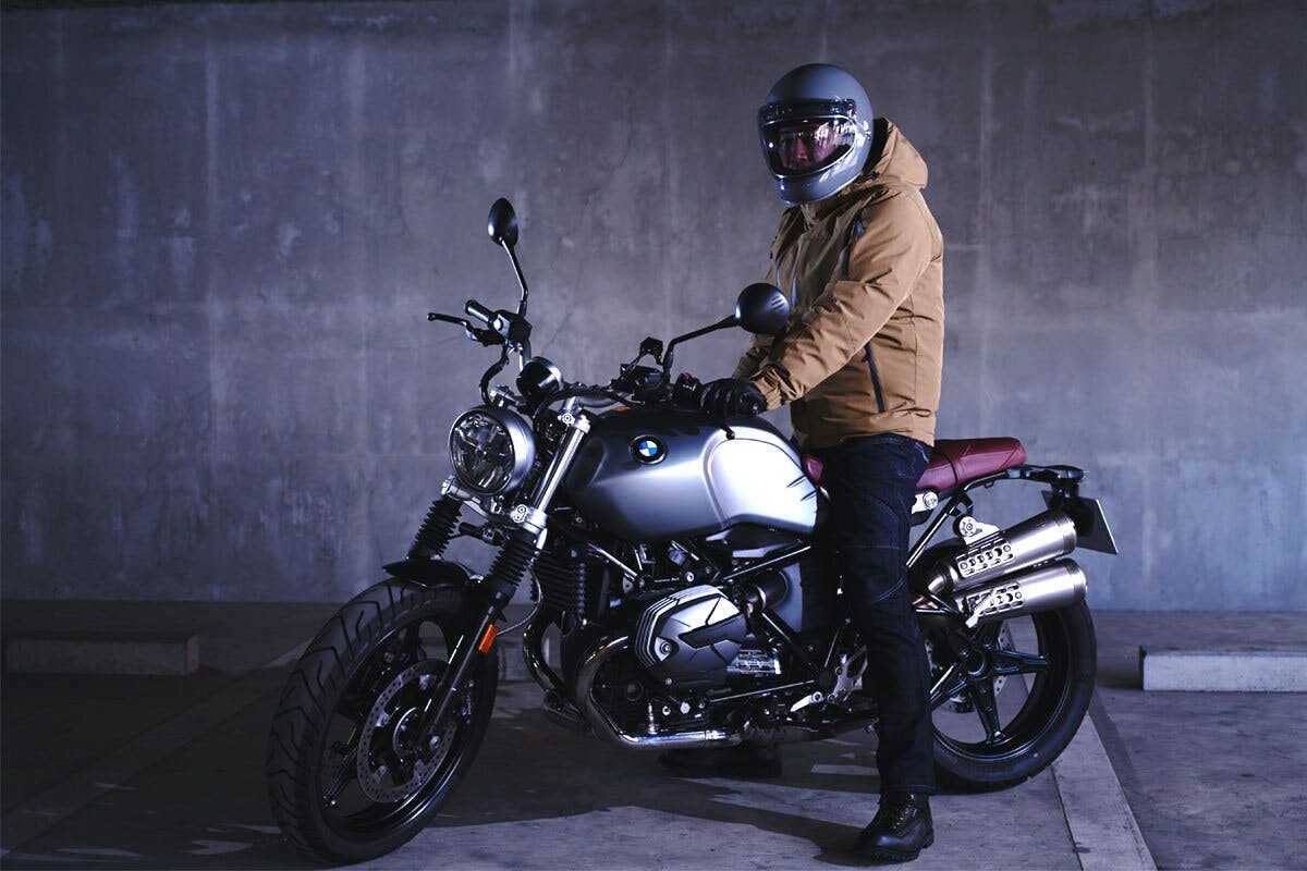 アウターには防寒ライディングジャケットを合わせてもGOODです。
