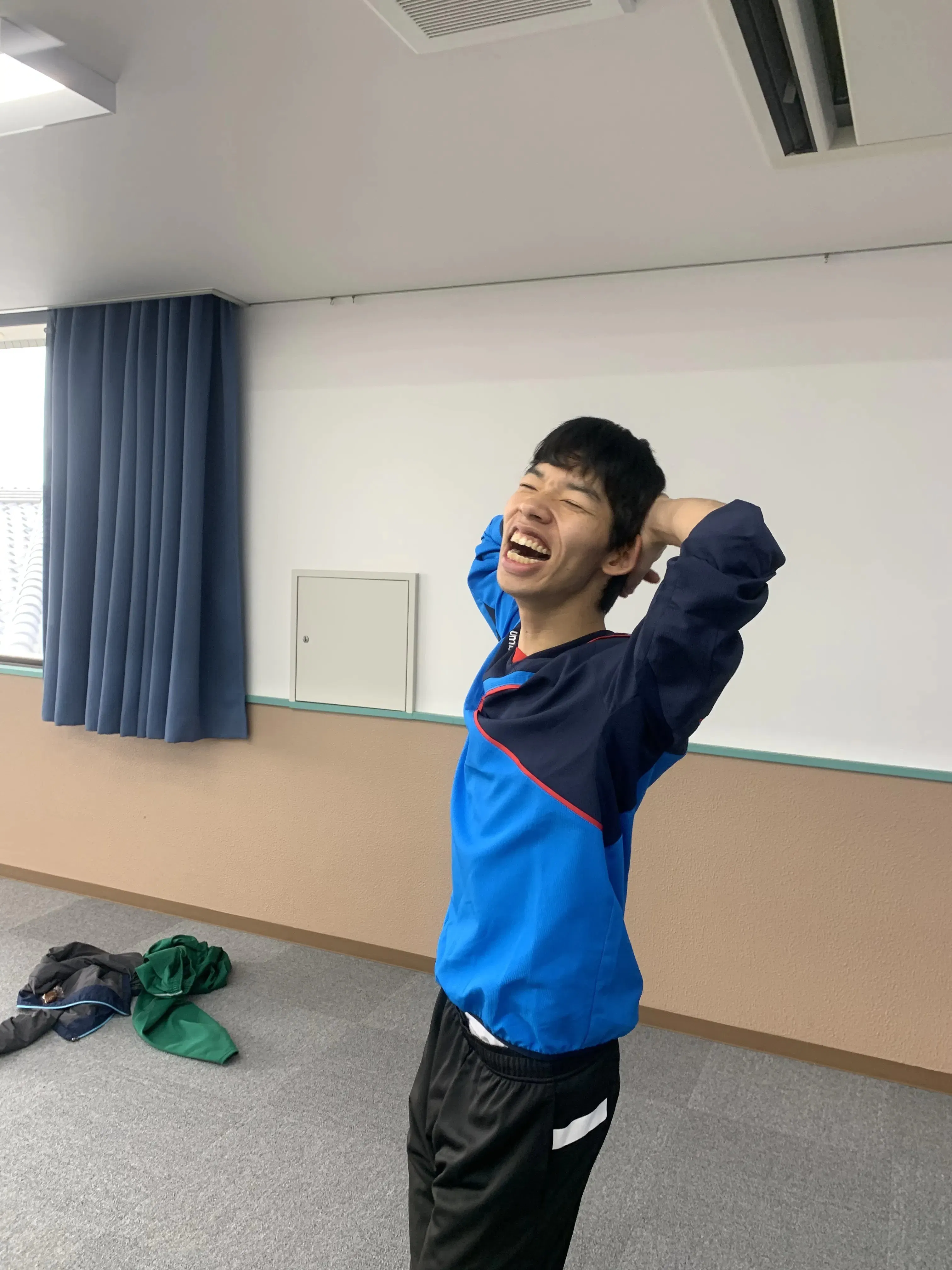 瀬戸内市中央公民館にてミュージカルの稽古中、ふと窓の外を見ると、どこまでも透き通るような青空!メンバーたち皆が心を打たれました。