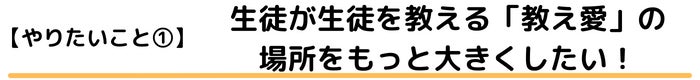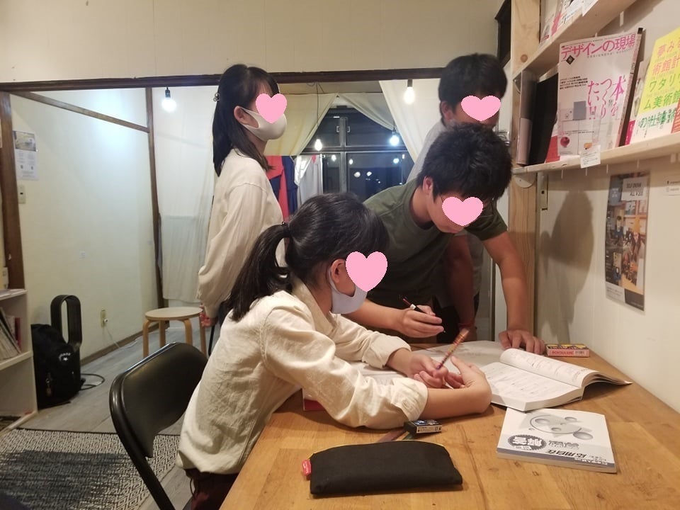 今は、平日はよこがわギルドを借りて行っている「演習空間」を、浜崎アカデミー内でできるようにします。演習空間では「教え愛」と名付けた仕組みを採用しています。これは、分からない問題がある生徒に、別の生徒が教えるというものです。