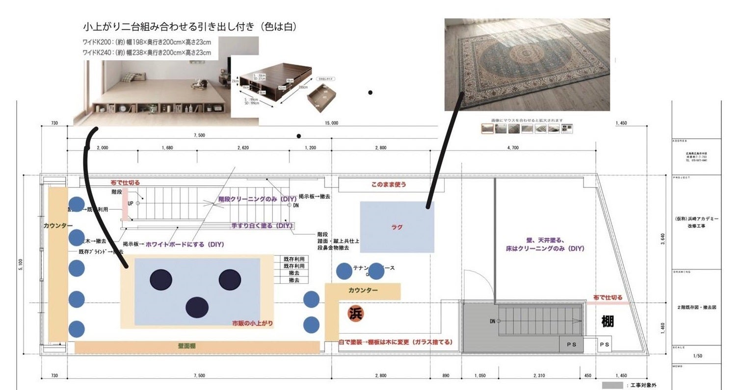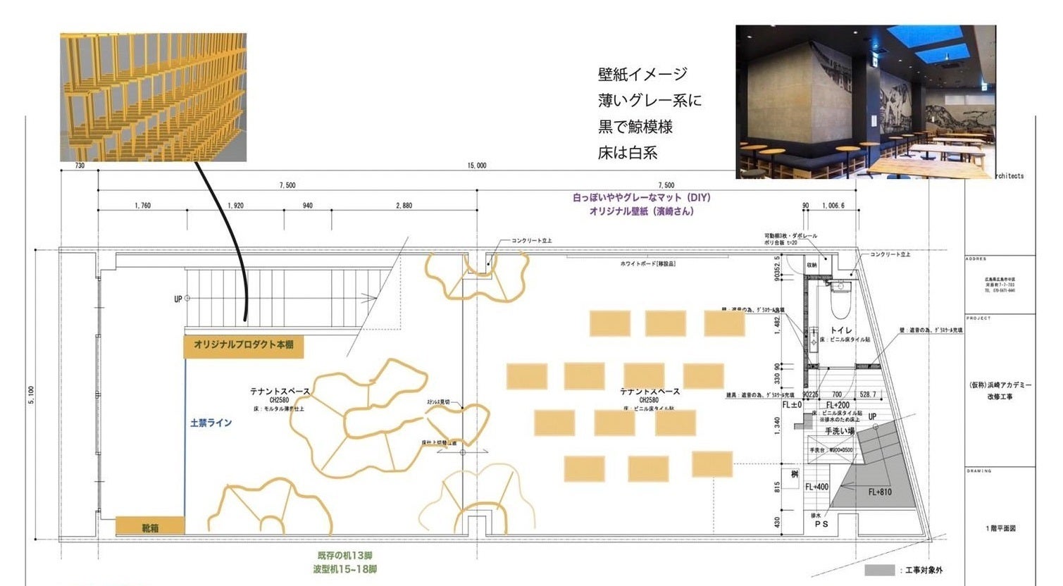 浜崎アカデミーを移転するにあたり、設備的な改修工事に加えて、「これが塾か!?」というくらいオシャレな空間にしたいと思っています。生徒が「ここで勉強したい!テンションが上がる!」と言うワクワクする場所にします。