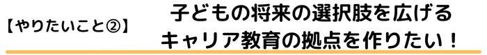 内装にこだわった塾は、授業だけでなくイベントスペースや撮影スペースとしても活用します。そこで、特にやりたいのが「キャリア教育」です。