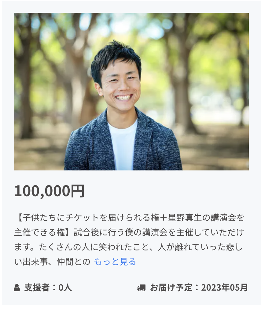 10万円以上の資金が集まった場合も、全て星野真生の引退試合へ子供を招待し、たくさんの子供に本物の挑戦を見せてあげるために使われます。