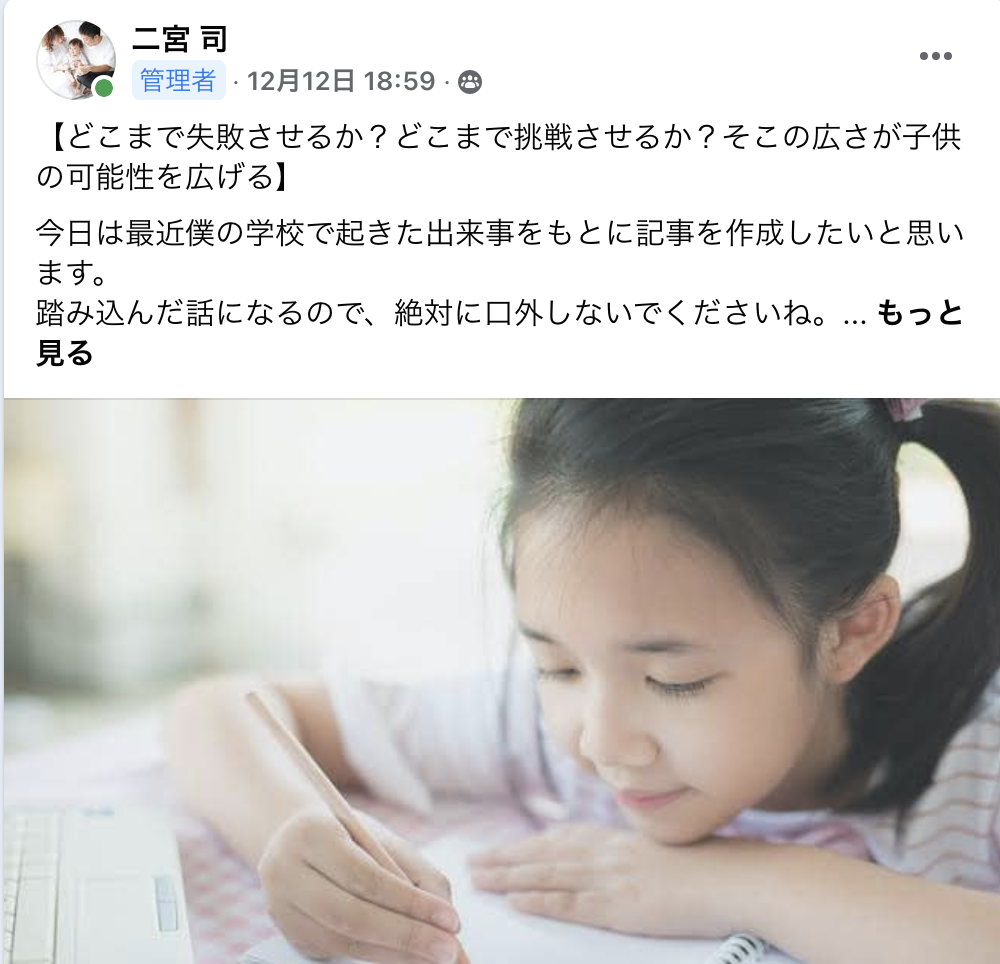 オンラインコミュニティFFC(For Future Children)代表の二宮です。