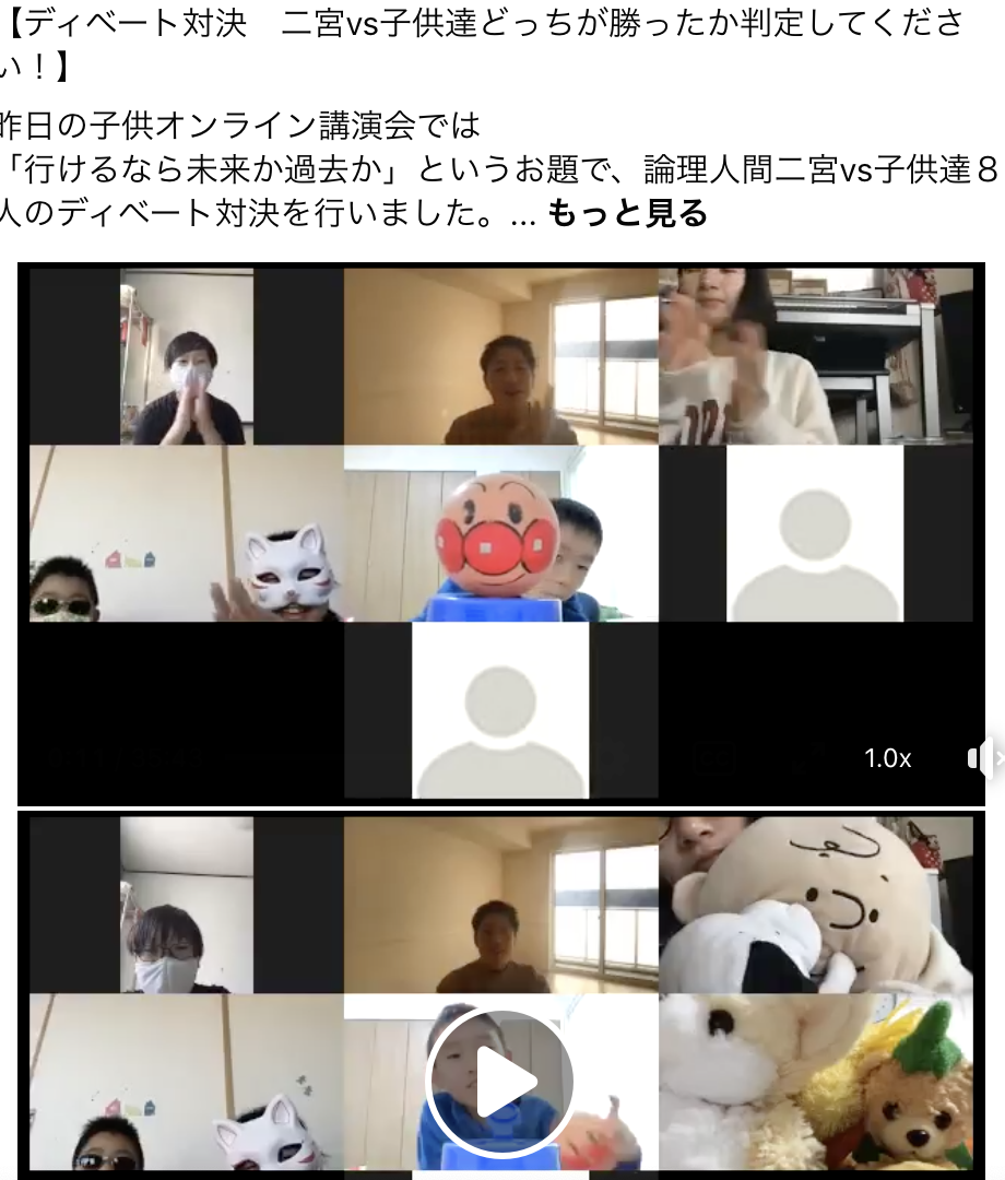 そして、週に1度(土曜日の朝8時〜)、子供達限定のオンライン講演会を行っています。