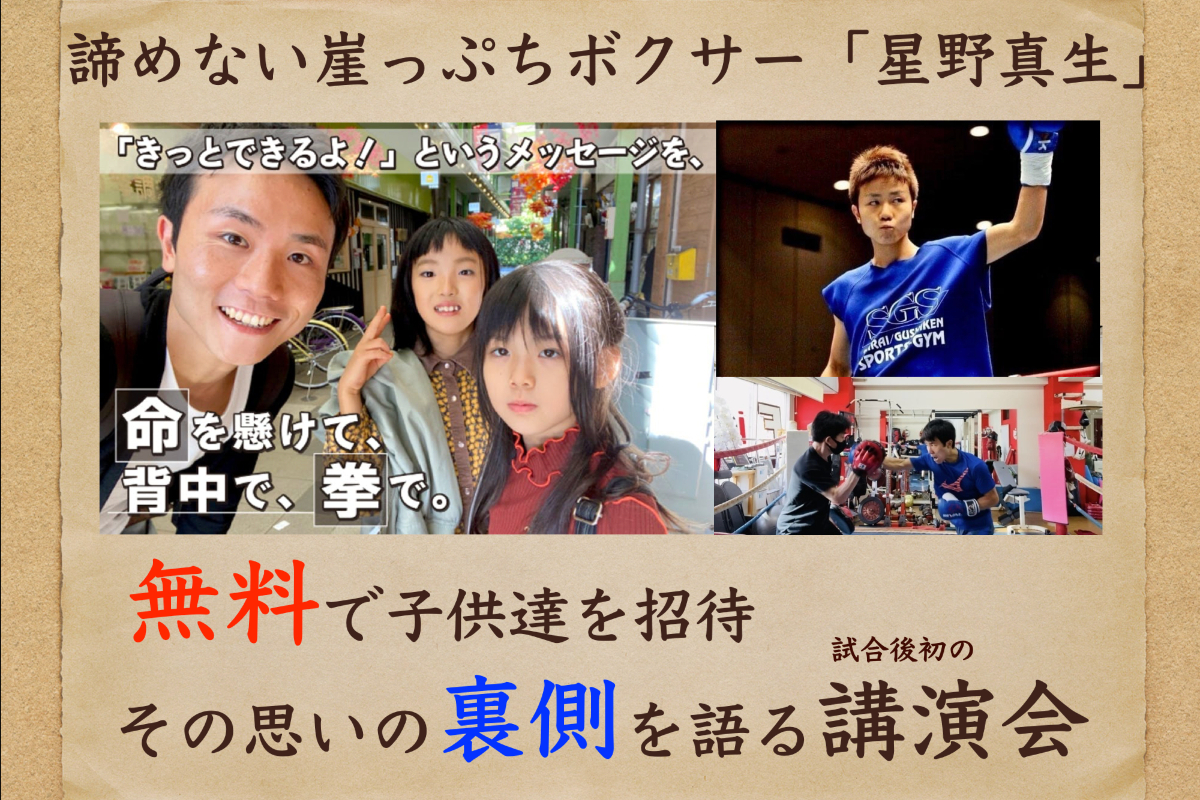 皆様からお預かりした資金は全て、星野真生の引退試合へ子供達を無料で招待することに使わせていただきます。